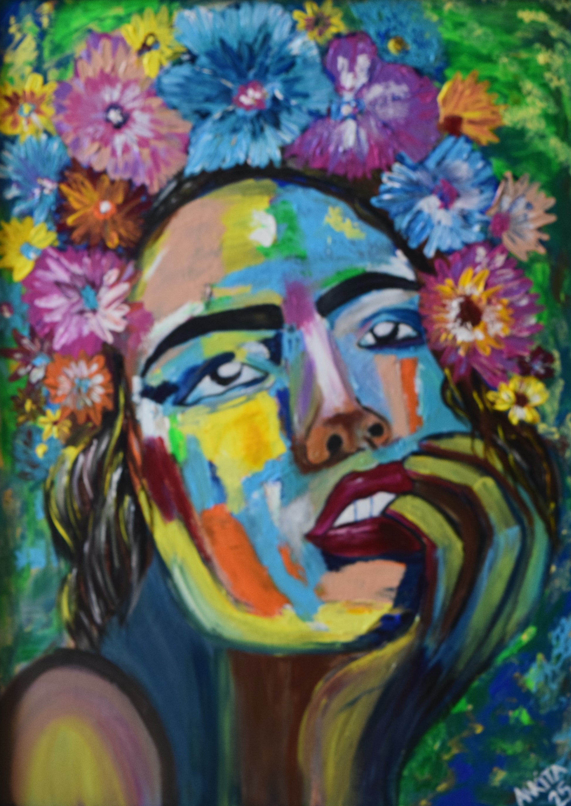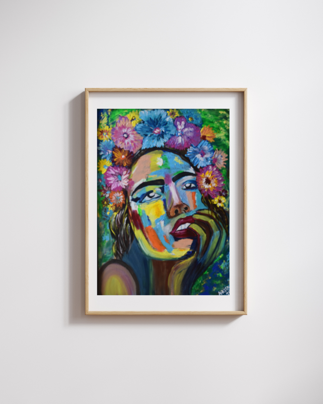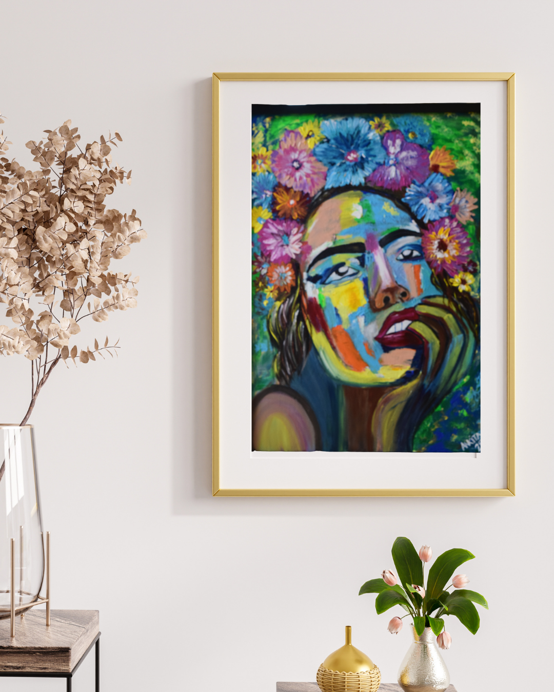 This piece captures the quiet intelligence and serene search for soul within. Finding beauty and calm in every hue.
