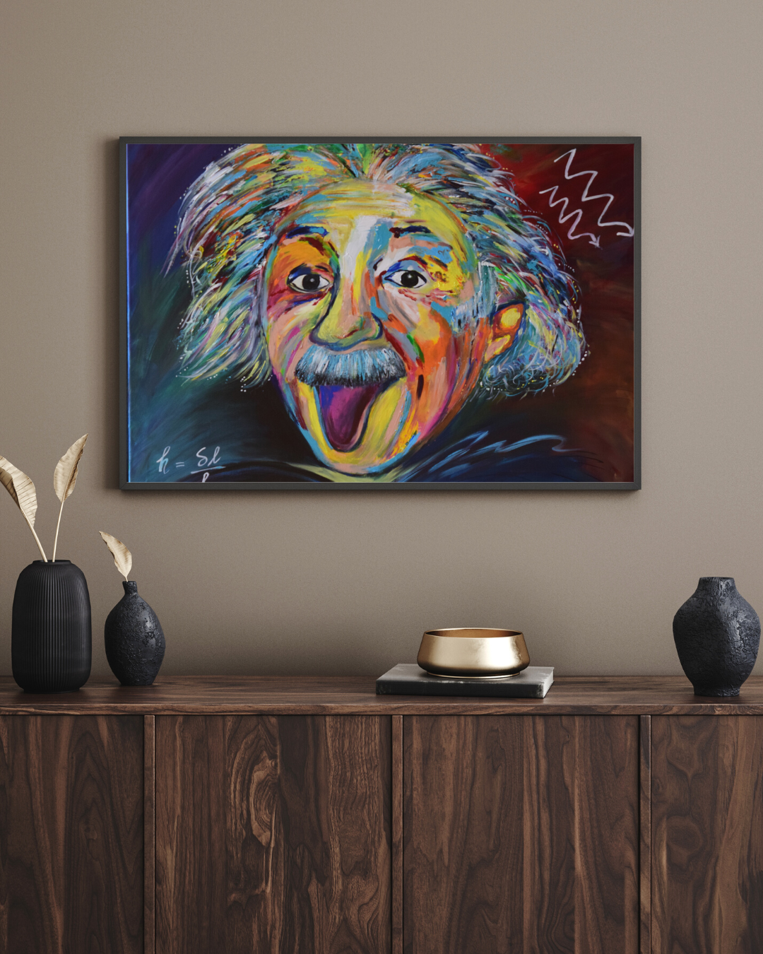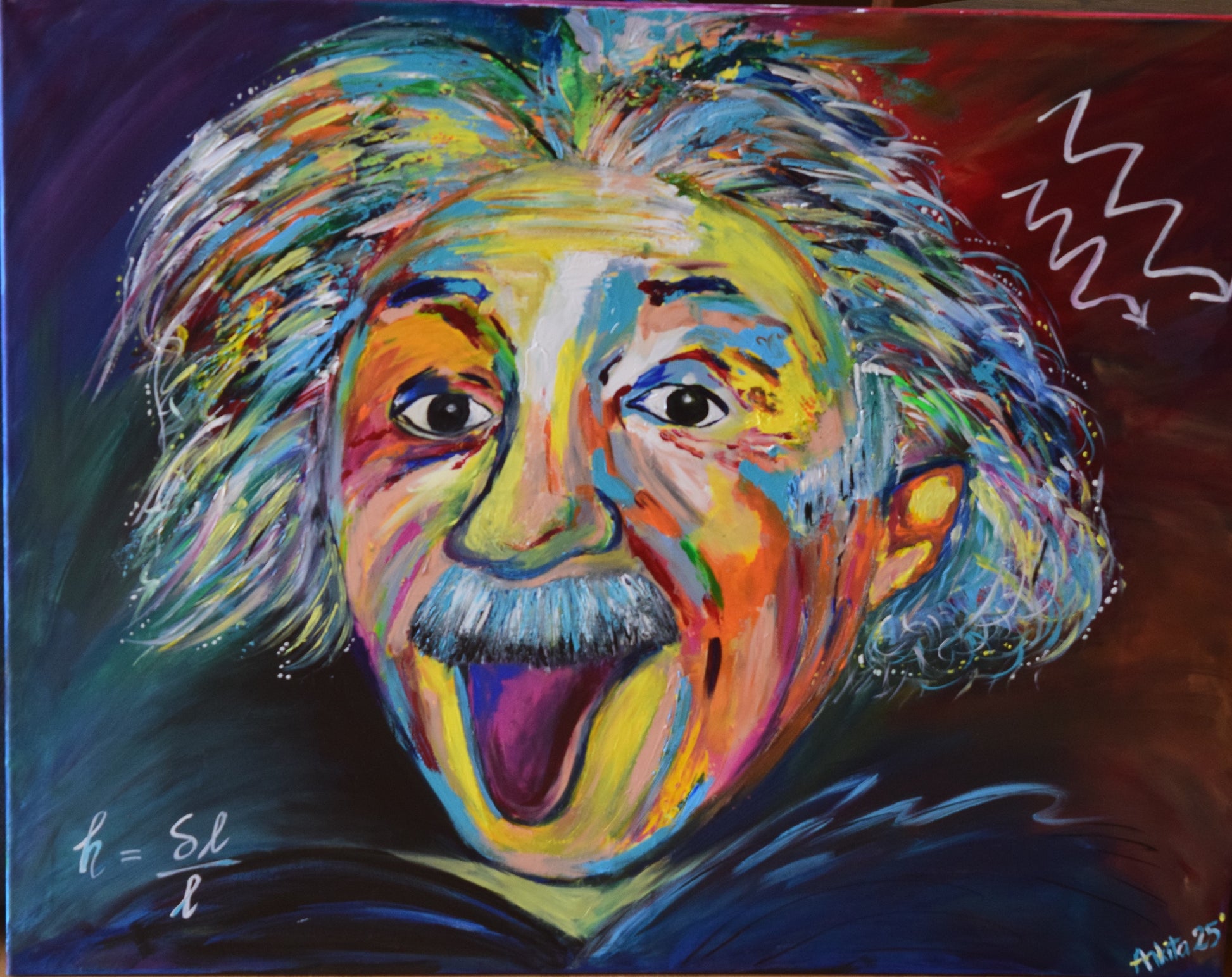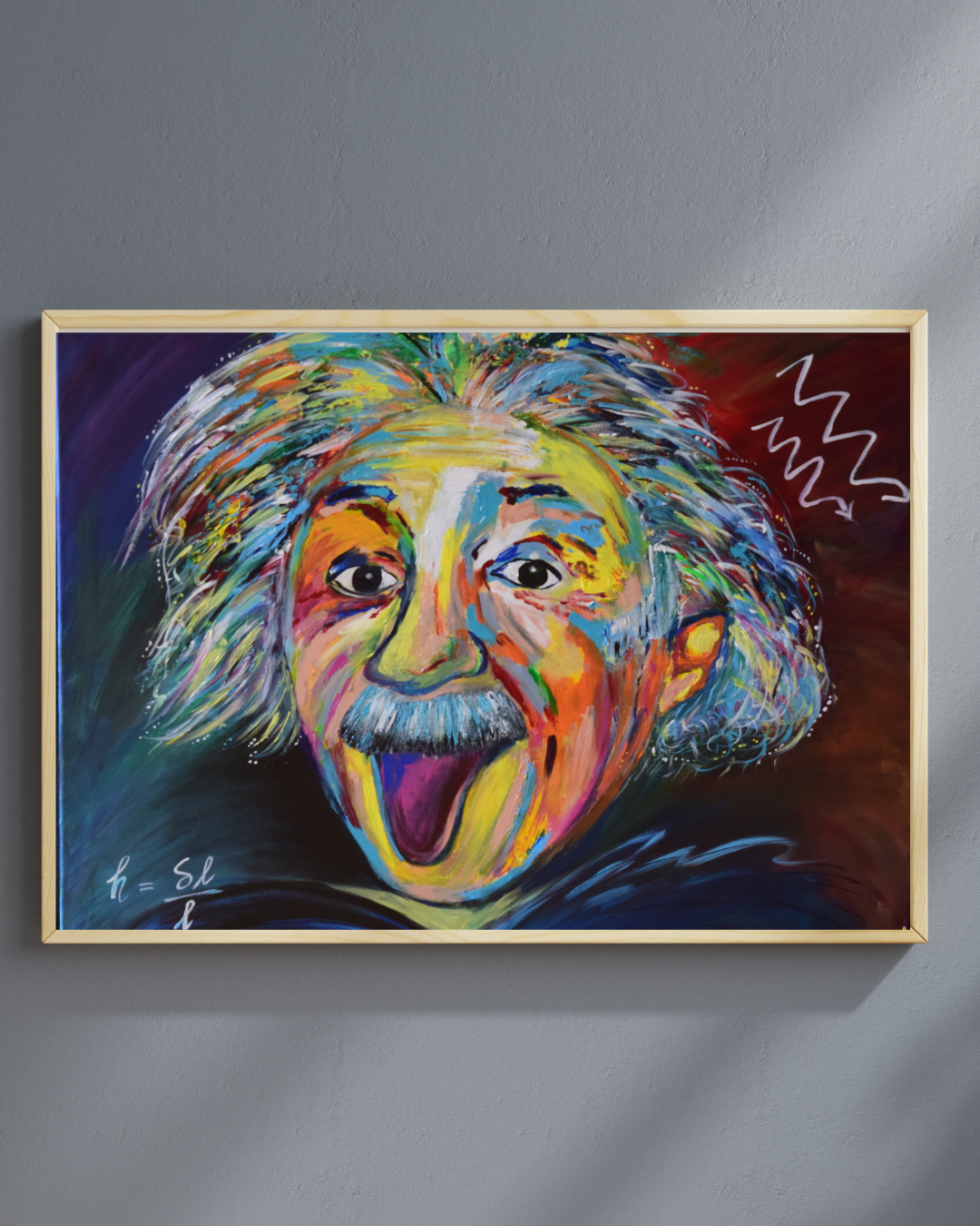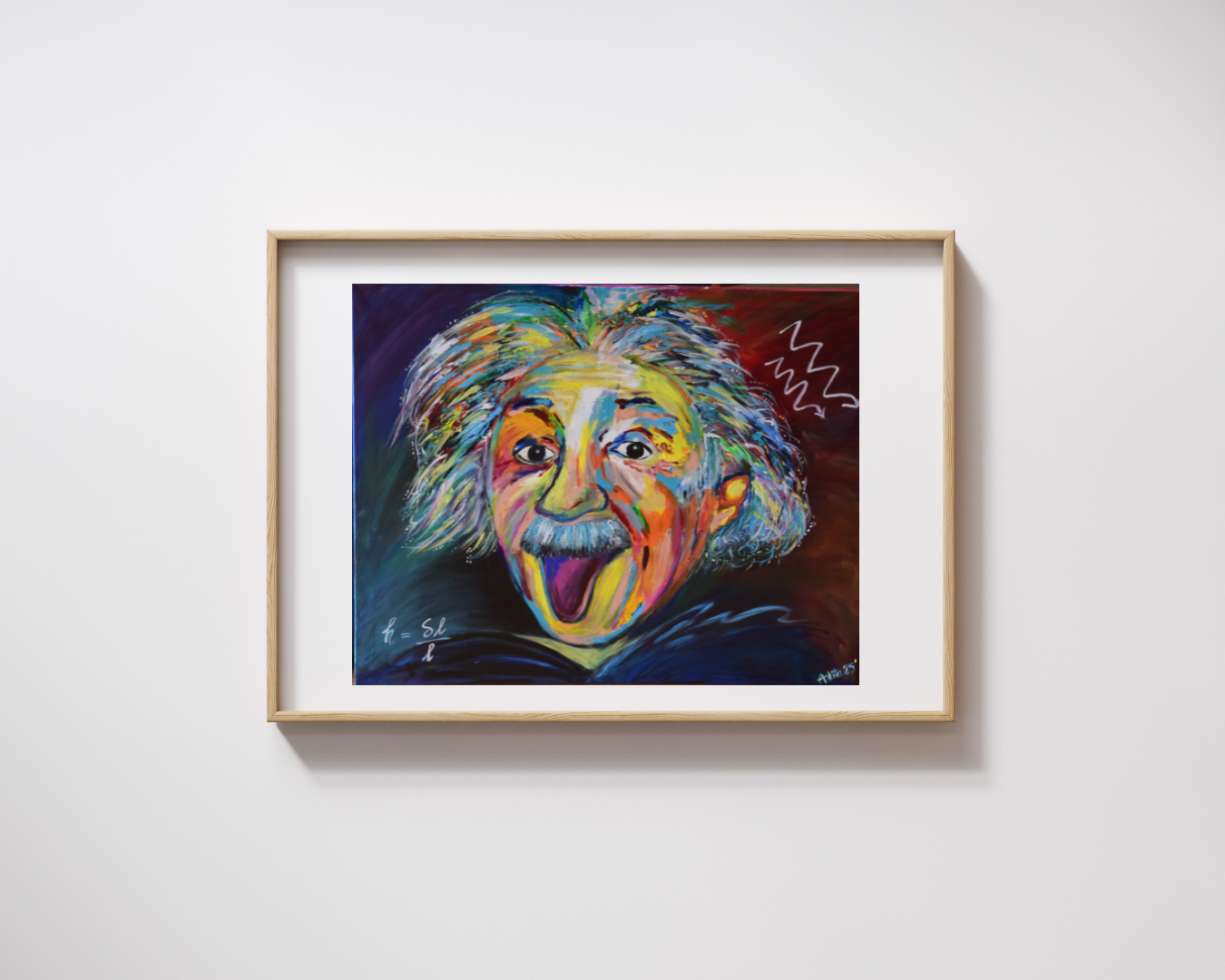 Genius in full spectrum! A vibrant tribute to the legendary Albert Einstein, capturing his iconic playful spirit and brilliant mind. Inspired by his famous tongue-out moment, this piece is a colorful exploration of art, science, and the unconventional genius.