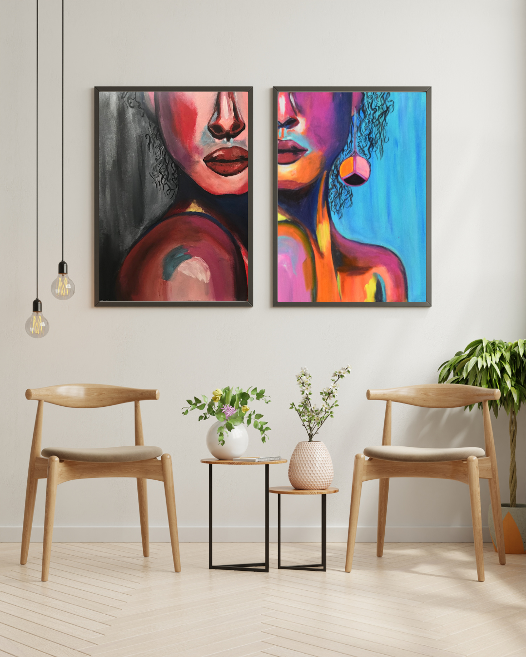 Two halves, one profound connection. This diptych explores the beautiful paradox of individuality and shared core values, where different outlooks dance to the same heart song. It's a vibrant journey into human feelings, curiosity, and the boundless exploration of what connects us, even when our paths diverge.